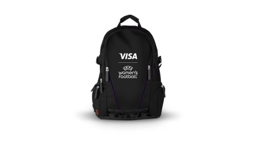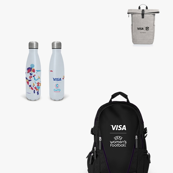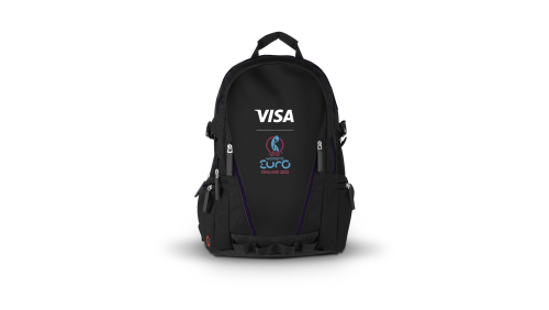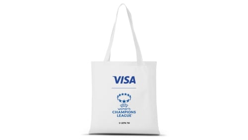 Screen transfer printed in ONE spot colour to one position on the bag with your VISA and NFL shield lock-up logo.