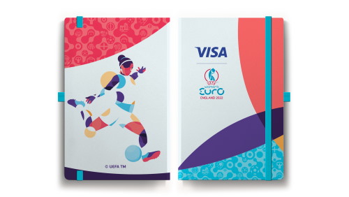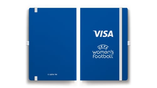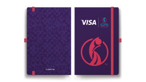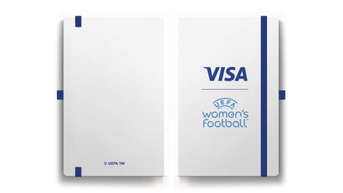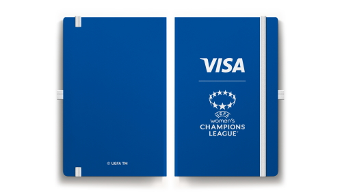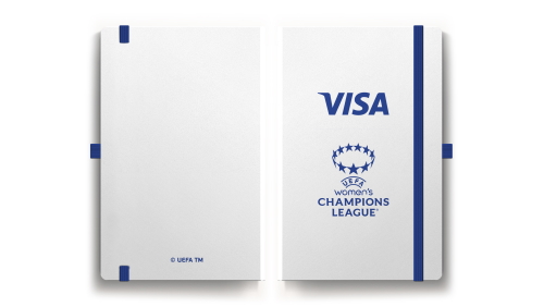 Debossed to one position on the front cover of the notebook with your VISA and NFL shield lock-up logo.