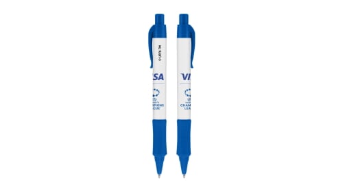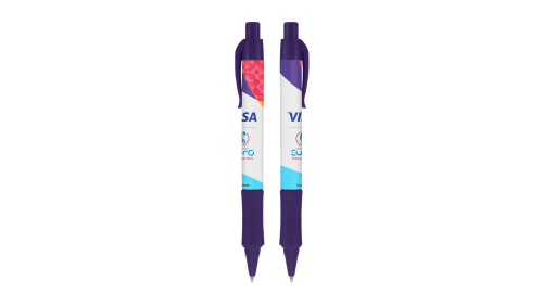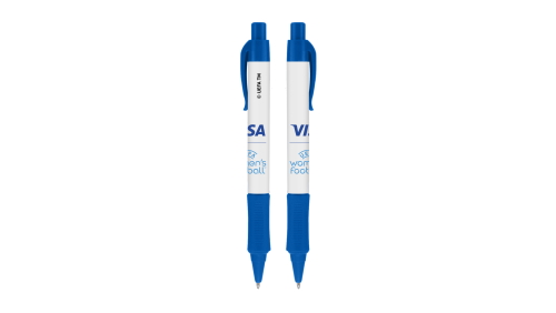 Classic ballpoint pen with a wide body and ergonomic rubberised grip.
