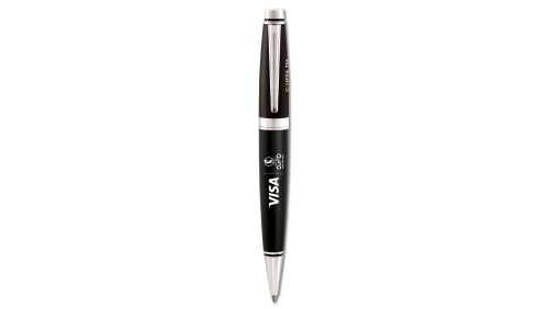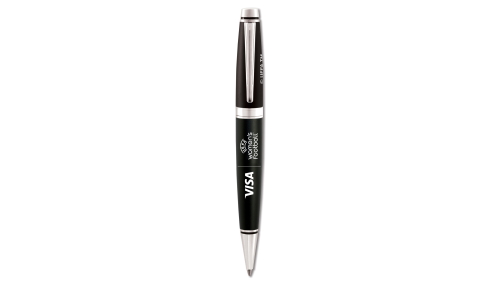 A high quality twist action ballpen in diamond black or soniz silver anodised aluminium with bright chrome styling. Fitter with a German made Parker stye black ink refill.