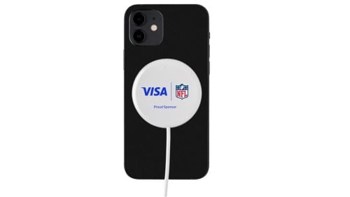 Pad printed in FOUR spot colours to one position on the charger with your VISA and NFL shield lock-up logo.
