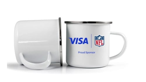 Printed in FOUR spot colours on the mug with your VISA and NFL shield lock-up logo.