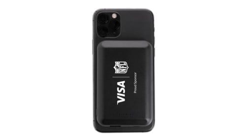 Digitally printed to ONE position on the powerbank with your VISA and NFL shield lock -up logo.